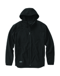 100% polyester, all season soft shell ; Wind resistant ; Water resistant, DWR finish ; Breathable ; 4-way stretch ; Media port ; Adjustable three-piece hood designed to contour for a comfortable fit; Zippered chest and hand pockets; Adjustable cuff ; Adjustable hem; Auto lock zipper with easy grab puller; Media port;