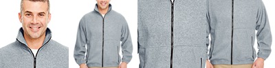 8.5 oz./yd2/280 gsm, 100% polyester fleece; Pill-resistant; Elastic cuffs; Extra-roomy nylon-reinforced zippered pockets;
