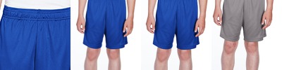 3.5 oz./yd2 / 130 gsm 100% polyester interlock; Moisture-wicking and UV 40+ protection; Side pockets; Team fit; Cationic dyes to ensure superior brightness and excellent color fastness; Elasticized waistband; No drawcord; 7" inseam; Transitioning from heat-seal label to tear away label. Inventory may be mixed;