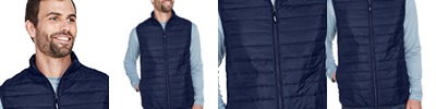 body: 1.2 oz. / 39 gsm 100% polyester with water resistant finish; lining: 100% polyester; insulation: 80 gsm thermal poly fil; center front zipper with autolock slider and reflective toggle; lower pockets with invisible zippers; stretch binding at armholes and hem; packable style into separate storage pouch;