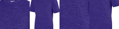 100% polyester heathered wicking knit ; Wicks moisture away from the body ; Pad print label ; Self-fabric crewneck collar; Set-in sleeves ; Double-needle hemmed bottom and sleeve.;