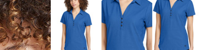 Dri-FIT moisture management technology achieves maximum comfort, while an iconic look gives this pique polo modern style. Design details include a self-fabric collar, dyed-to-match buttons and open hem sleeves. Tailored for a feminine fit with a five-button placket. The contrast Swoosh design trademark is embroidered on the left hem. Made of 4.7-ounce, 100% polyester pique Dri-FIT fabric.