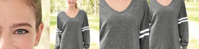 The pullover goes trendy with an attractive V-neck, raw-serge edges in fabulous colors.